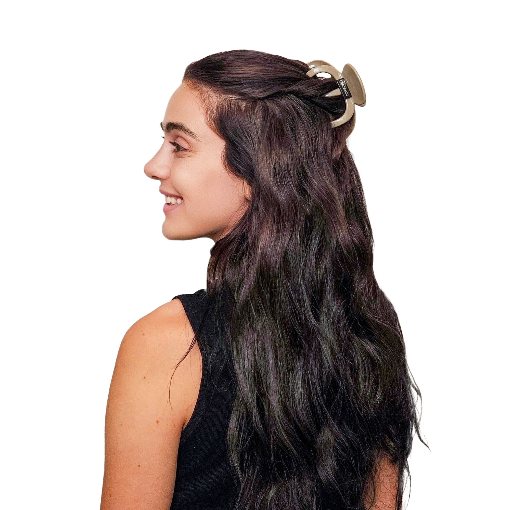 Our Loro clip effortlessly blends style and function, offering a secure, gentle hold that protects your hair while adding a chic touch to any look.