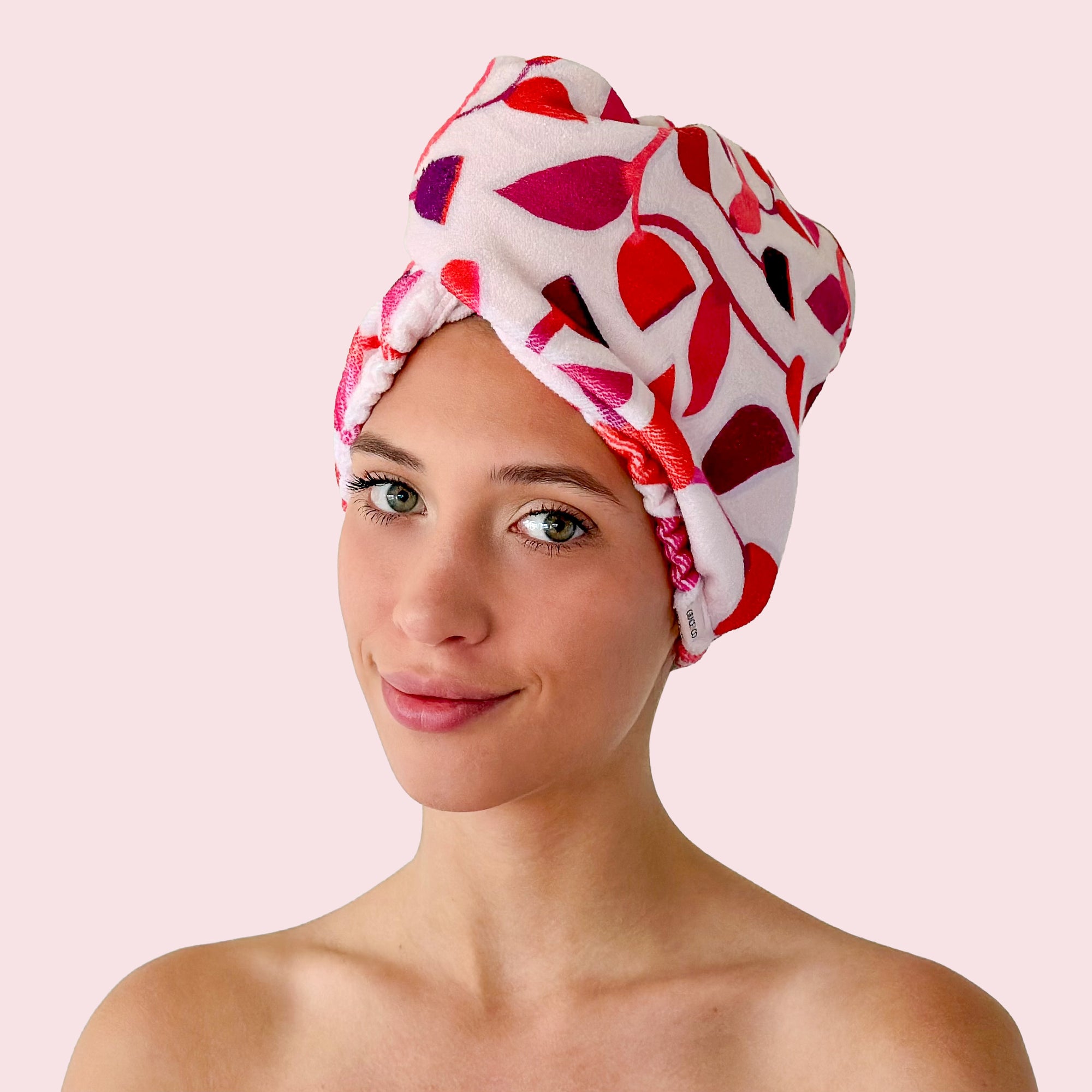 For rapid drying and easy plopping, our lightweight hair towel wrap is super simple to use. Just wrap, twist, and lock it in place by looping the elastic over the button and adjusting for your perfect fit. Enjoy hands-free multi-tasking without extra weight or slippage.